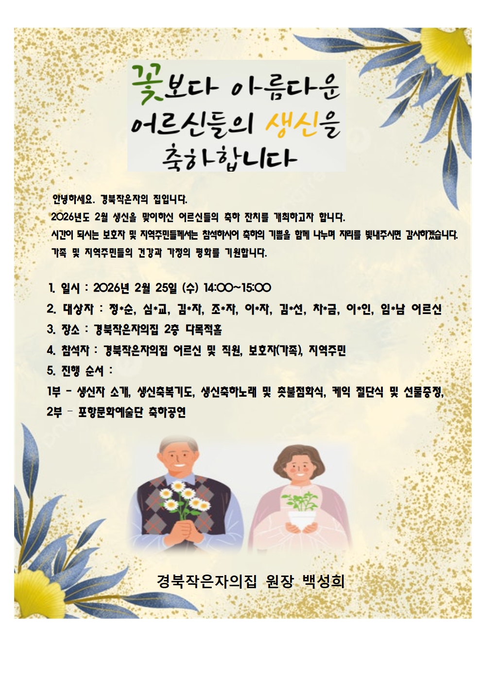 [장기요양기관공시] 경북작은자의집 2026년 예산안을 공시합니다.